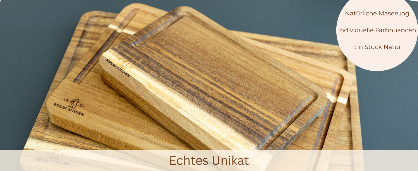 Die drei verschiedenen Größen decken alle Schneidaufgaben ab und lassen sich dank des kostenlosen Brettständers platzsparend und griffbereit lagern. Inklusive Holz-Premium-Pflegeöl für langfristige Pflege und Schönheit. Ein durchdachtes Set für anspruchsvolle Köche.