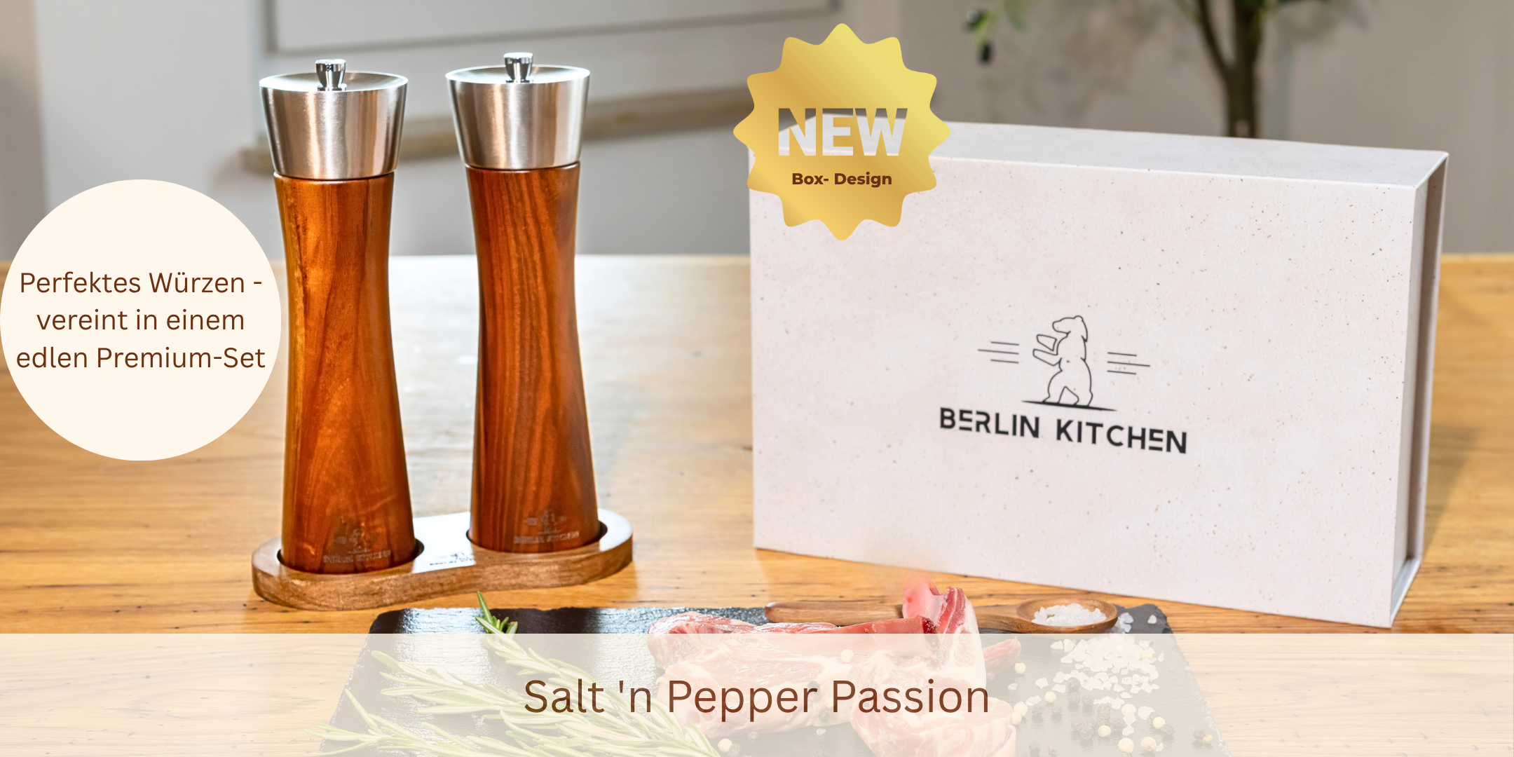 Die Salt 'n Pepper Passion Mühlen vereinen höchste Qualität, edles Design und durchdachte Funktionalität. Verpackt in einer luxuriösen Magnetbox, sind sie das perfekte Geschenk für Hochzeiten, Einweihungen oder Geburtstage – inklusive personalisierbarer Geschenknachricht.